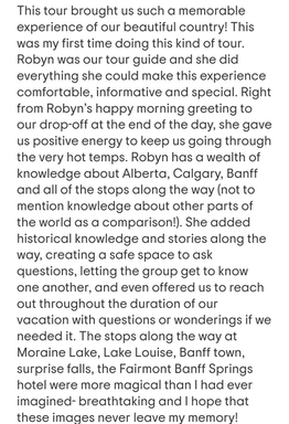 Banff Wilderness is dedicated to providing personalized guided tours and adventure experiences within the stunning Banff National Park. Our focus is on creating unforgettable memories through professional sightseeing tours, hiking adventures, and custom excursions for individuals, groups, and corporate clients. Operating from May to October with licensed guides, we emphasize small group sizes and wellness integration, ensuring an authentic and engaging outdoor experience.